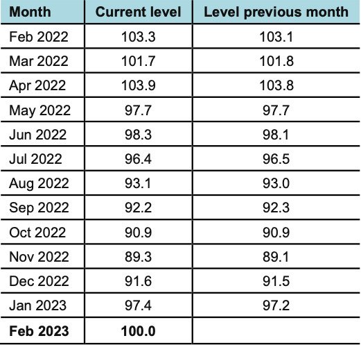 Il barometro economico KOF è aumentato di 2,6 punti a febbraio, passando da 97,4 (rivisto da 97,2) a 100. Questo rappresenta il valore standard corrispondente alla media nel lungo periodo. Dall’ultimo minimo toccato nel novembre 2022 (89,3), si osserva ora un’incoraggiante tendenza al rialzo che prosegue già da tre mesi. Era dallo scorso aprile che il barometro non toccava quota 100.