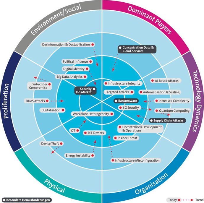 Cyber Security Threat Radar di Swisscom mette in risalto nuove minacce, tra cui quelle del tipo «Concentration Data & Cloud Services». In una soluzione Multi Cloud, un’azienda utilizza vari servizi cloud, spesso di fornitori diversi. Questo significa più flessibilità, ma anche più interfacce critiche e più potenziali vulnerabilità. La scarsa disponibilità di specialisti complica ulteriormente le attuali problematiche legate alla sicurezza informatica. Per trattenere il personale di cui hanno bisogno, le imprese devono investire in percorsi di specializzazione interni e promuovere i talenti. La concorrenza è tanta e il mercato altamente competitivo.